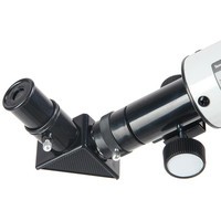 Его можно использовать и днем и ночью. Днем - как обычную подзорную трубу, а ночью, естественно, по прямому назначению. Телескоп дает прямое (не перевернутое) изображение.В него можно увидеть лунные кратеры диаметром больше 10 км, Марс, Сатурн и фазы Венеры. С помощью сменных окуляров (в комплекте 2 шт.), можно получить увеличение от 18х до 90х. Окулярная часть с 90° зеркалом позволяет удобно вести наблюдение, разместив прибор просто на столе (высота штатива 360 мм). Наблюдения днем лучше вести при увеличении 18х (с окуляром 20 мм), тогда ближняя точка фокусировки будет около 5 метров.